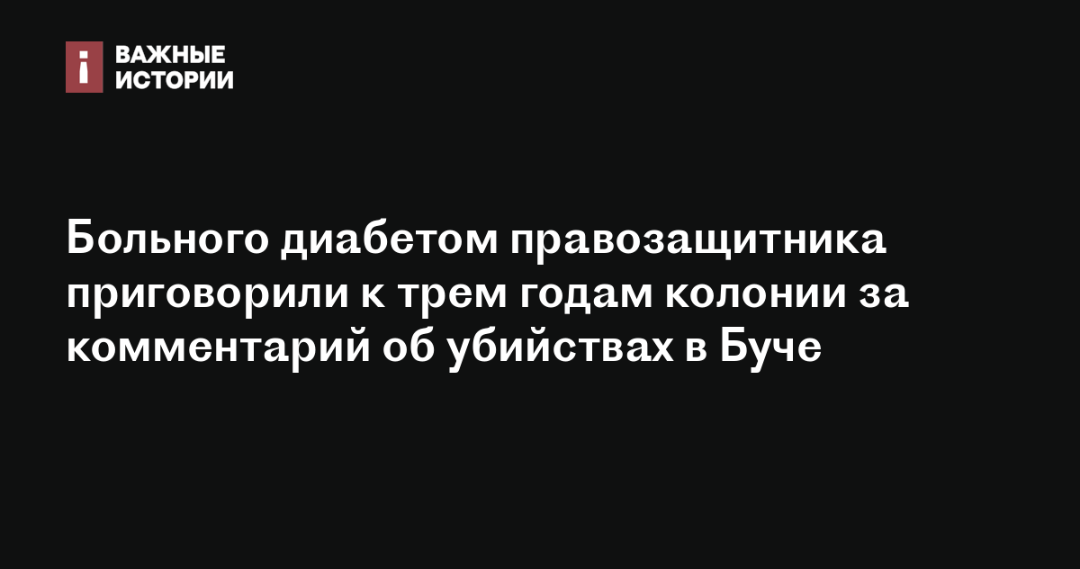 Больного диабетом правозащитника приговорили к трем годам колонии за комментарий об убийствах в Буче