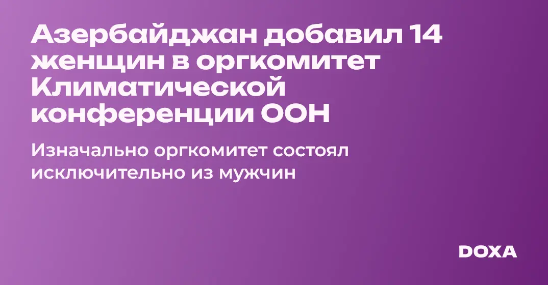 Азербайджан добавил 14 женщин в оргкомитет Климатической конференции ООН (COP29). Изначально комитет состоял из 28 человек — исключительно мужчин. Конференция пройдет в ноябре 2024 года в Баку.