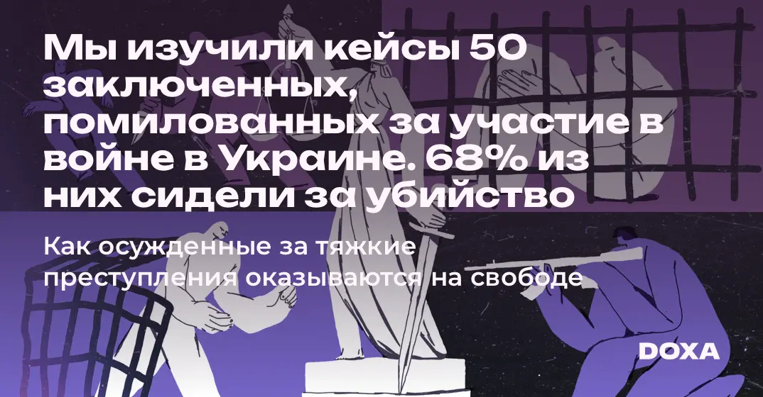 Мы изучили кейсы 50 заключенных, помилованных за участие в войне в Украине. 68% из них сидели за убийство