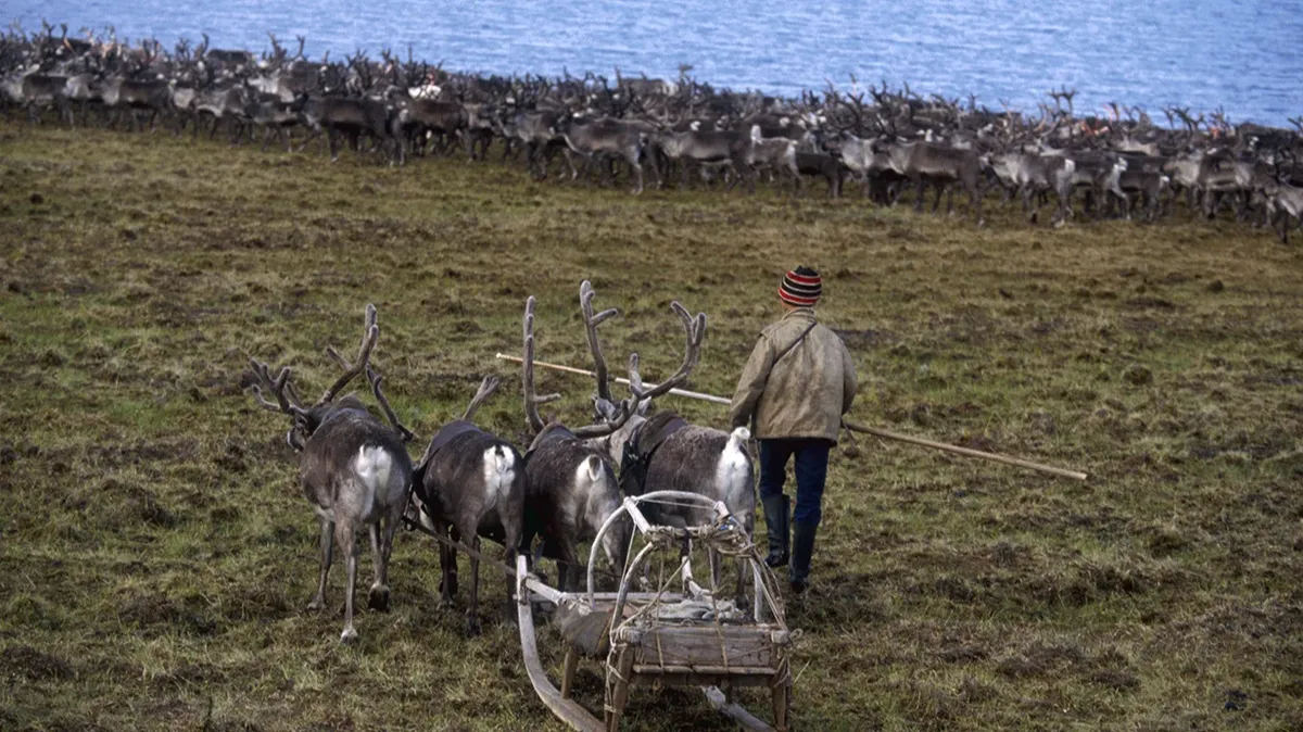 An Indigenous reindeer herder in the village of Khatanga in Siberia’s Krasnoyarsk region. Photo by Jacques Langevin / Sygma / Getty Images