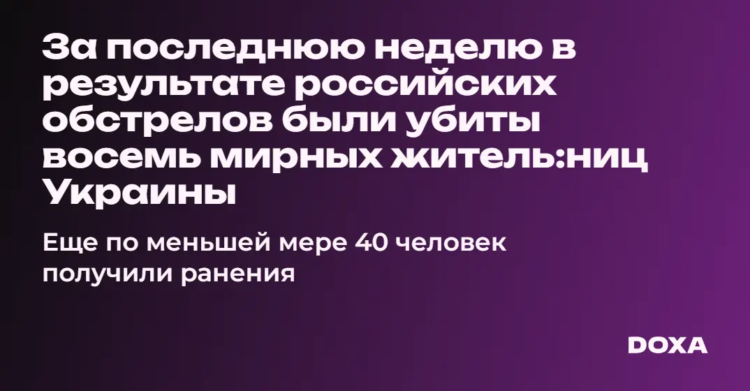 За последнюю неделю в результате российских обстрелов были убиты восемь мирных житель:ниц Украины