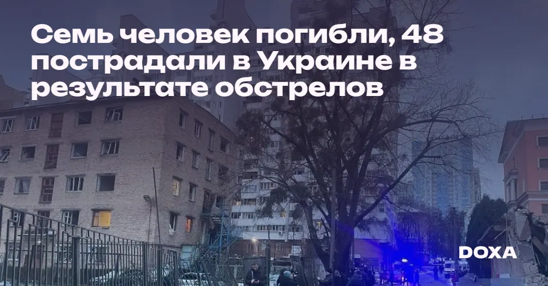 Не менее семи человек погибли из-за российских обстрелов Украины за последние сутки, еще 48 мирных житель:ниц были ранены. Россия обстреляла Харьковскую, Донецкую, Херсонскую, Луганскую, Днепропетровскую, Киевскую области и столицу Украины, сообщили сегодня администрации этих регионов.