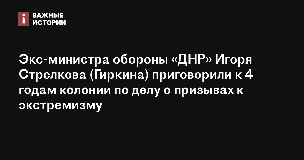 Экс-министра обороны «ДНР» Игоря Стрелкова (Гиркина) приговорили к четырем годам колонии по делу о призывах к экстремизму. Об этом сообщает телеграм-канал в поддержку Стрелкова.