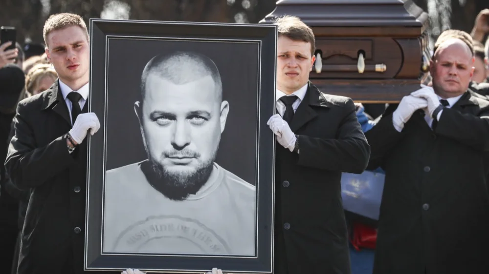 Vladlen Tatarsky’s funeral ceremony in Moscow, 8 March 2023. Photo: EPA-EFE/YURI KOCHETKOV