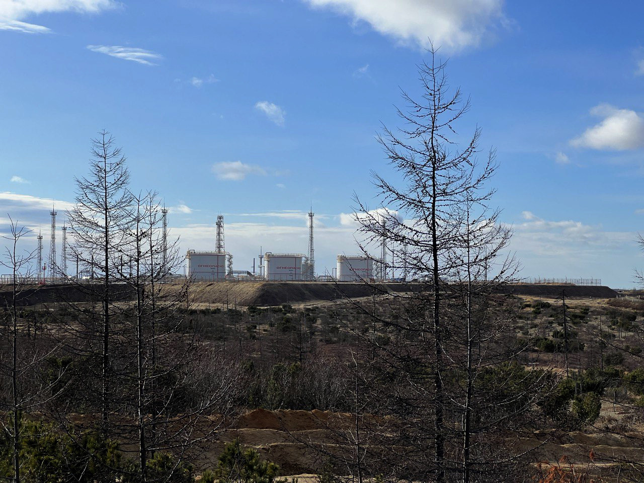 Чем дальше на север острова, тем чаще природу Сахалина "разрезают" промышленные объекты. С одной стороны горизонта – синие сопки, низкорослый лес и поля, покрытые ягелем. С другой – забетонированные площадки, вышки и нефтехранилища с надписью "огнеопасно". Именно промышленность генерирует большую часть невидимых глазу выбросов парниковых газов.