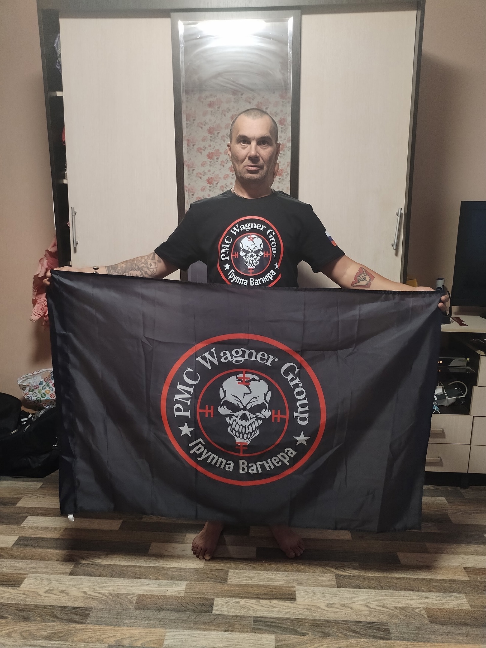 В ориентировке не указано, что Комаров или Калмыков воевали в Украине. При этом на странице второго мужчины во «ВКонтакте» выложены несколько фотографий, на которых он позирует в футболке с гербом «ЧВК Вагнера» и аналогичным флагом. Кроме того, у него на руке татуировка, посвященная наемникам — буква W с жестом, при котором рука сжата в кулак, но большой палец и мизинец отведены в стороны.
