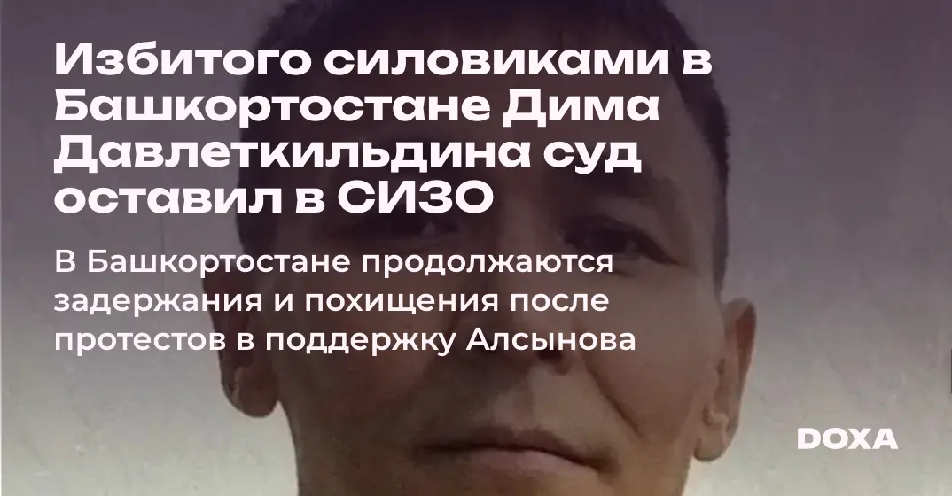 Верховный суд Башкортостана принял решение оставить в силе арест Дима Давлеткильдина, избитого силовиками. Продолжаются задержания и похищения за предполагаемое участие в протестах в поддержку Фаиля Алсынова.