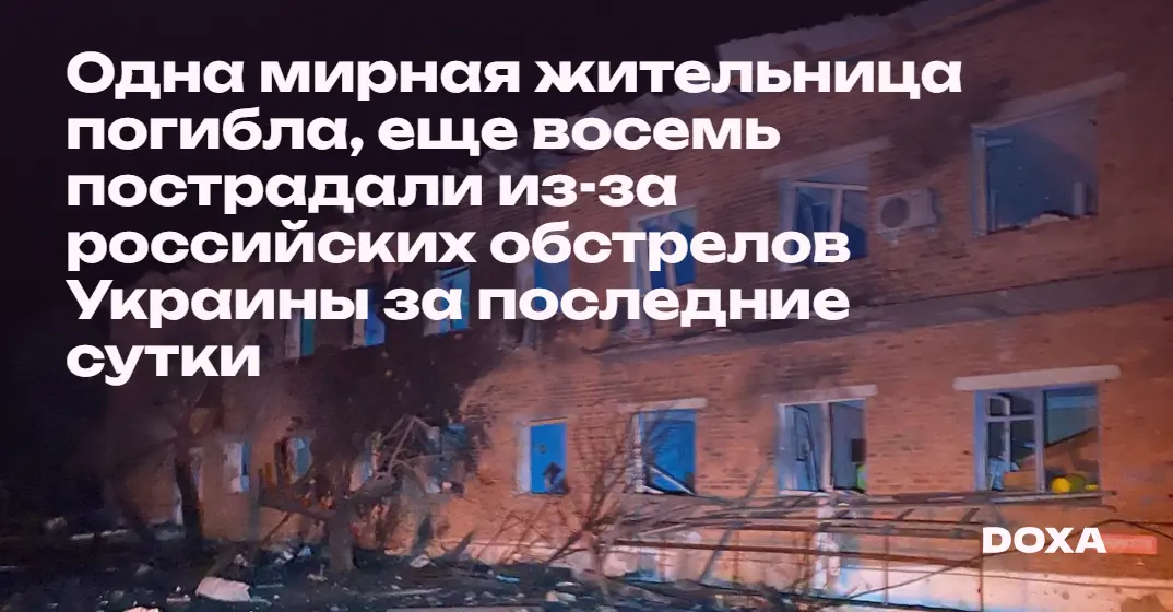 Одна мирная жительница погибла, еще восемь пострадали из-за российских обстрелов Украины за последние сутки