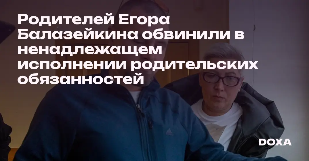 Татьяна и Даниэль Балазейкины оспорили в суде решение комиссии по делам несовершеннолетних, которая в апреле 2023 года признала их виновными в ненадлежащем исполнении родительских обязанностейч. 1 ст. 5.35 КоАП РФ по отношению к их сыну, политзаключенному Егору Балазейкину. По административной статье родителям грозит предупреждение или штраф.