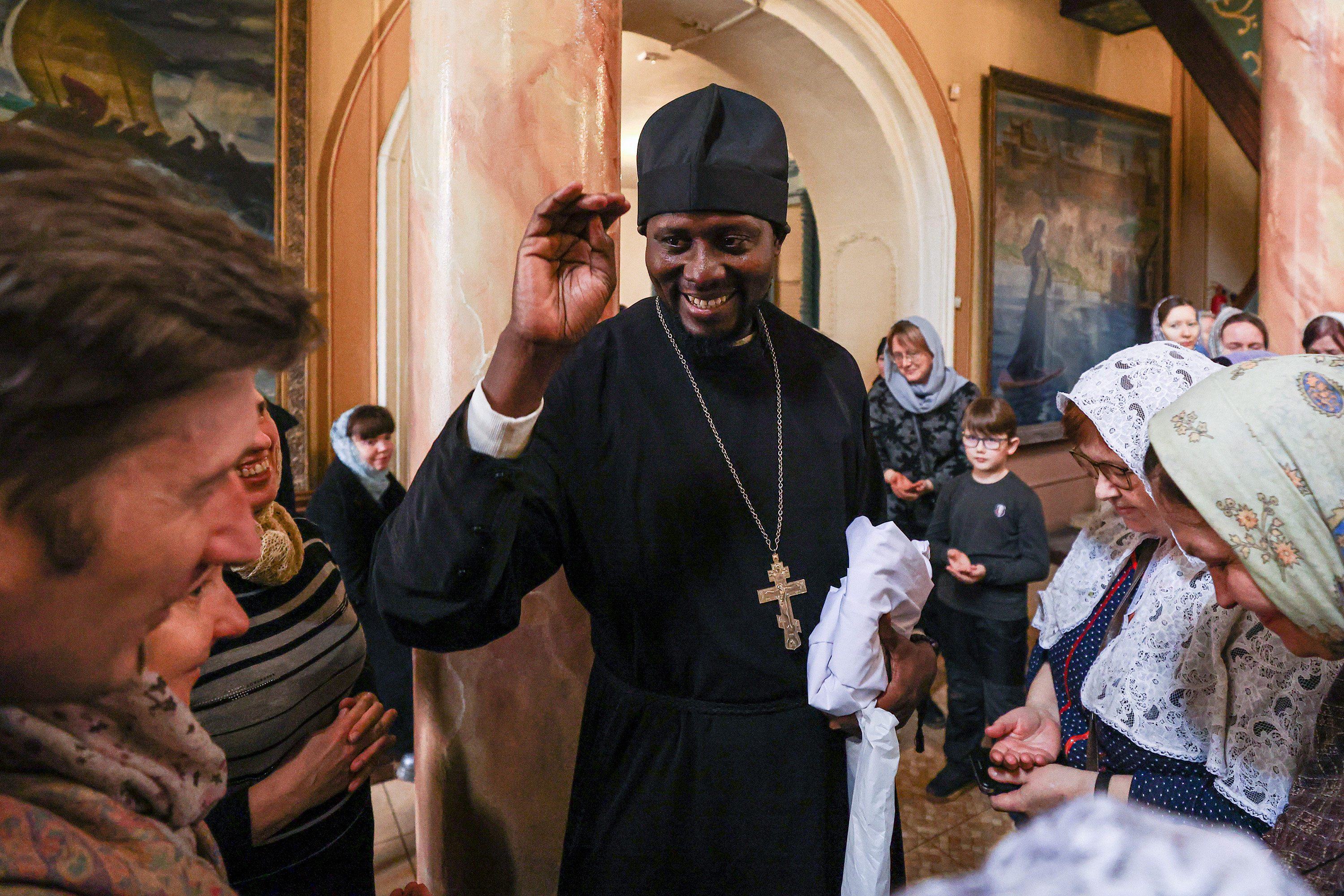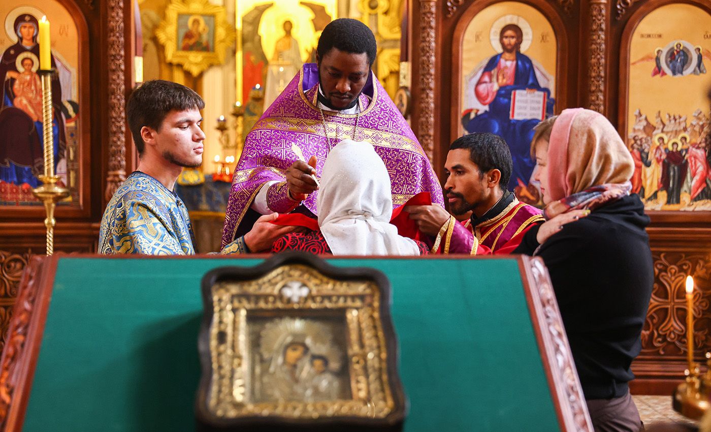 Отец Сергий из ЦАР во время литургии в Вознесенском храме, апрель 2023, Рязань. Фото: Александр Рюмин / ТАСС