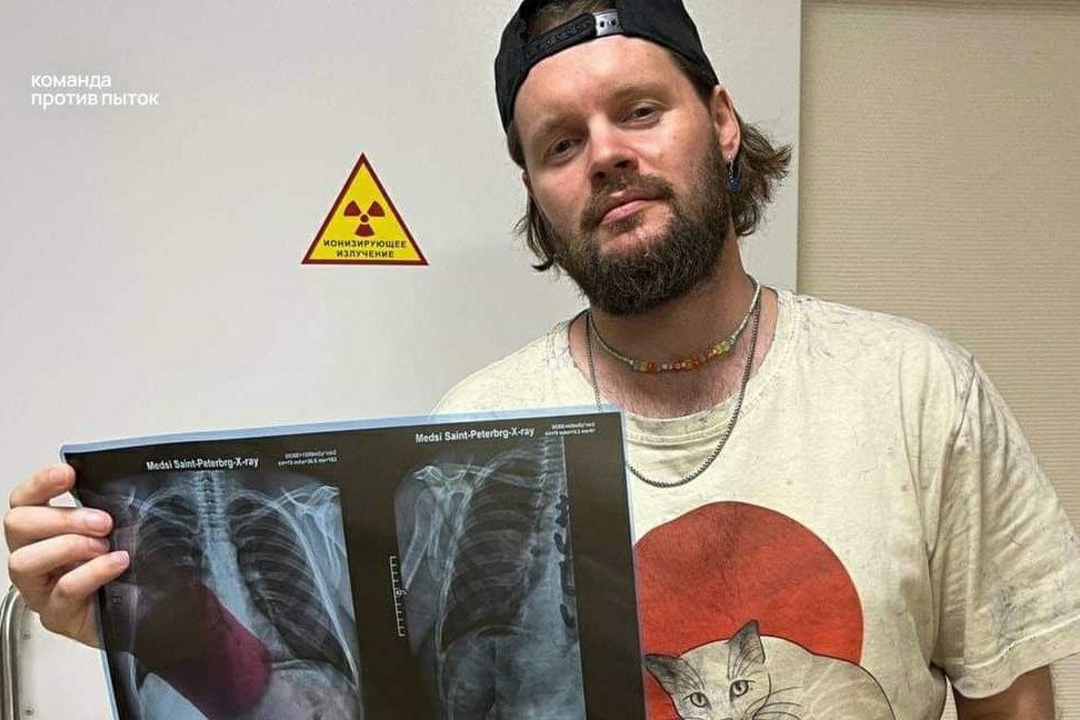 Слава Малахов с рентгеновским снимком после перелома ребра, полученного в психиатрической больнице. Фото: «Команда против пыток» Слава Малахов / VK