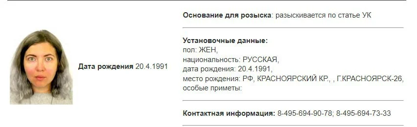 В карточке Бирюковой говорится, что она разыскивается по статье УК. Ранее против нее возбудили уголовное дело по статье об оправдании терроризма (ч. 2 ст. 205.2 УК РФ). Кроме этого, соратница Навального обвиняется в участии в «экстремистском сообществе» (ч. 2 ст. 282.1 УК).