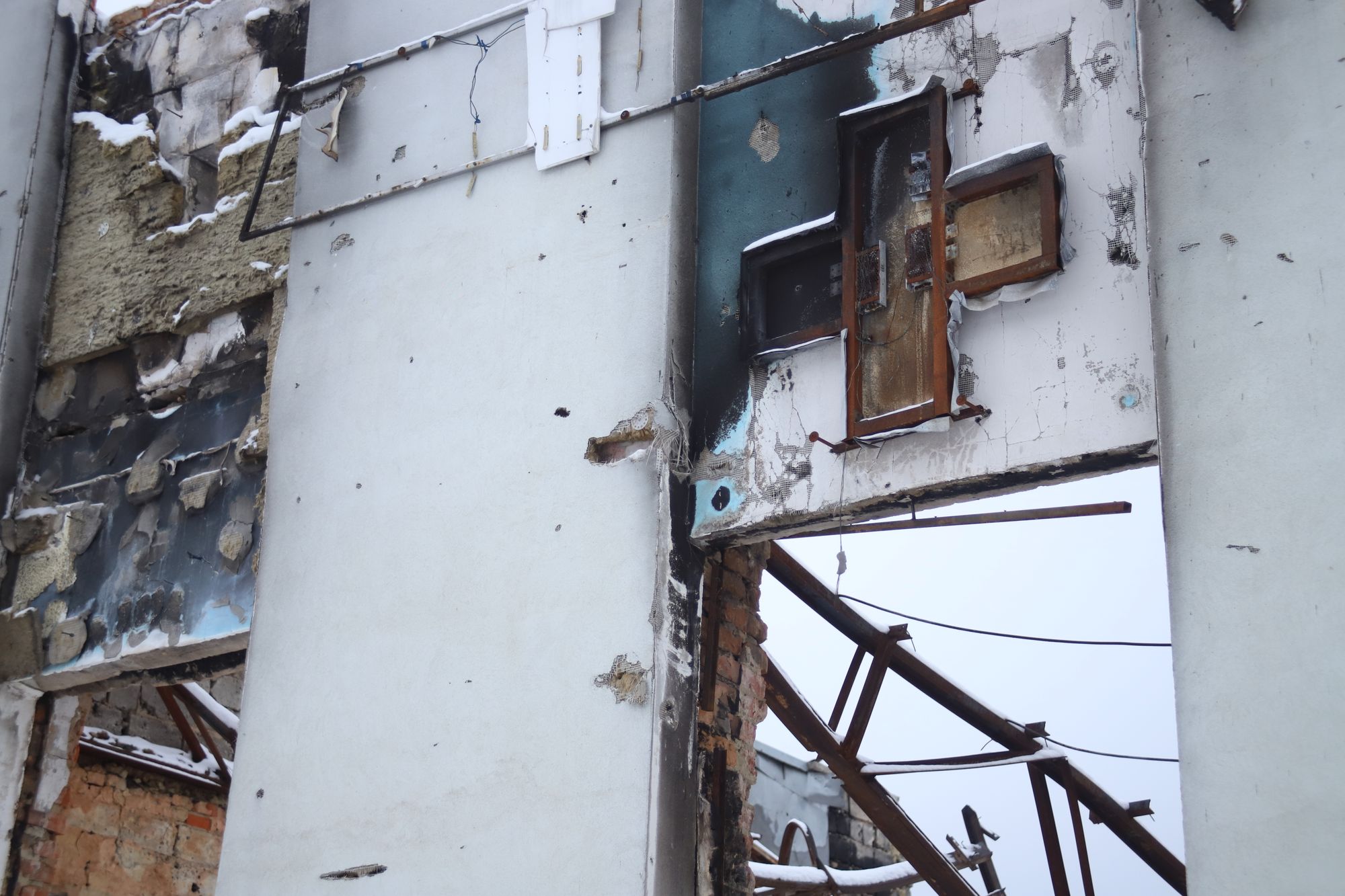 Старое, двухэтажное, здание поликлиники во время оккупации пострадало настолько, что врачи больше не могли там работать. Сейчас по программе "Build Back Better" в ней проводят ремонтные работы: как внутренние, так и внешние.