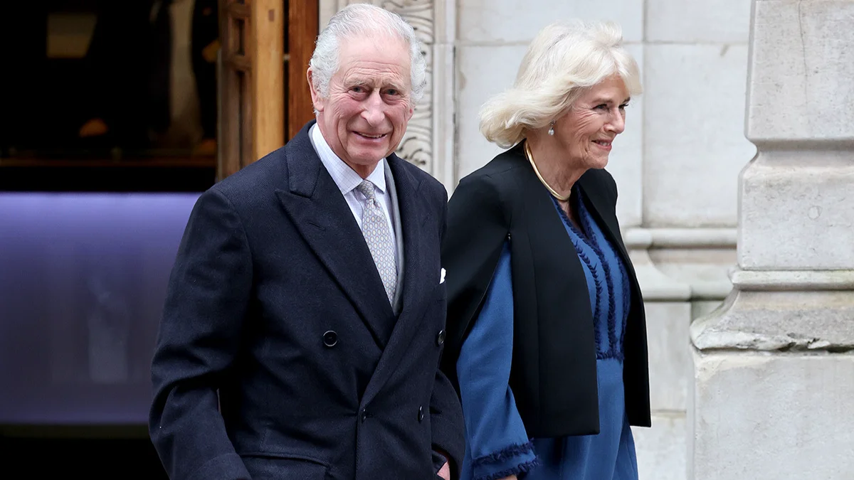 Король Карл III с герцогиней Корнуольской Камиллой покидают клинику в Лондоне, 29 января 2024 года. Фото: Chris Jackson / Getty Images