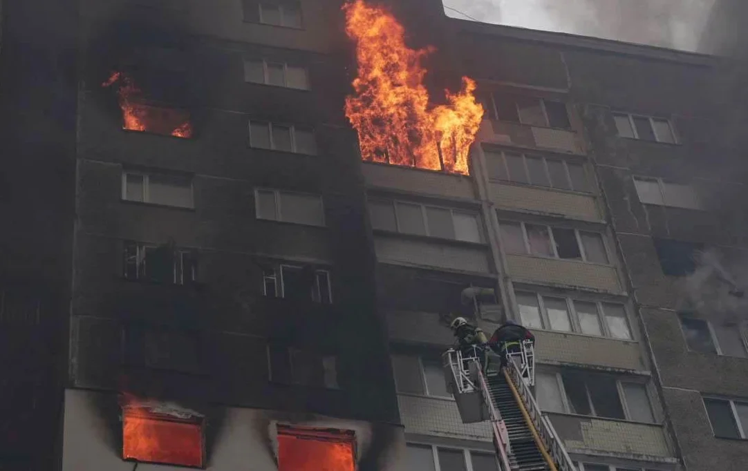 The aftermath of the attack on Kyiv. Photo: Ukrainian emergency services