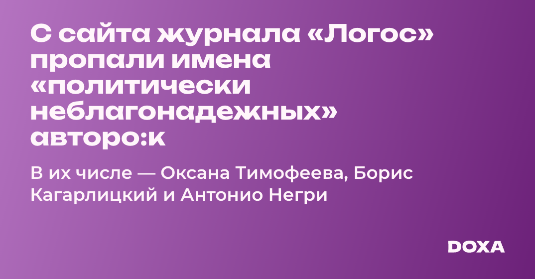 С сайта журнала «Логос» пропали имена «политически неблагонадежных» авторо:к