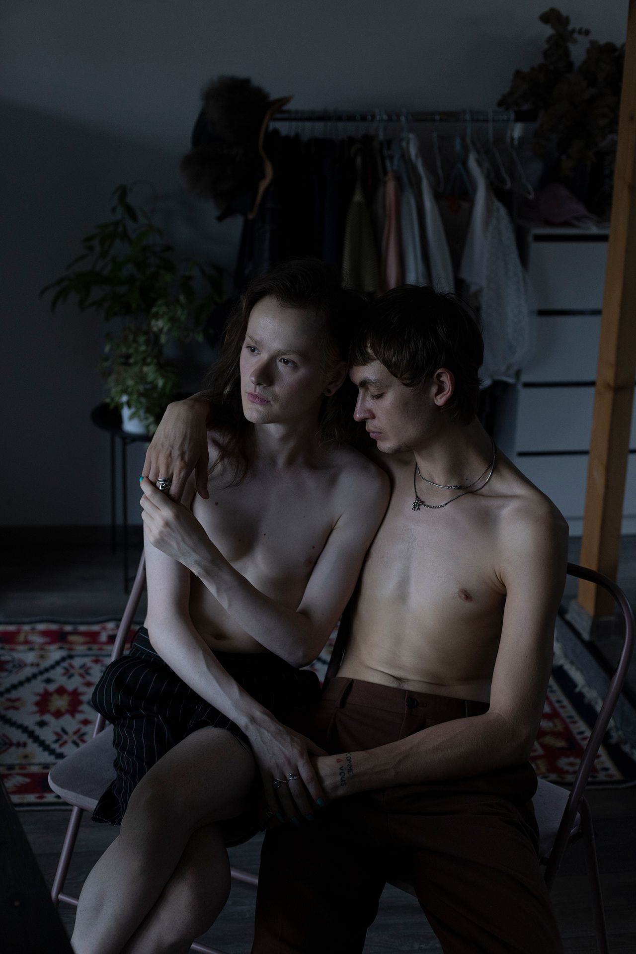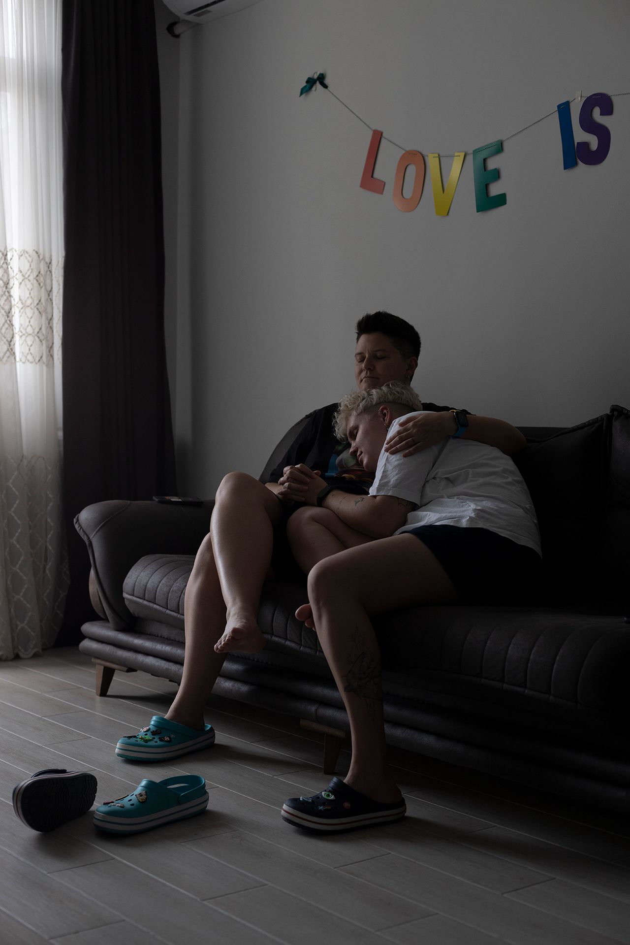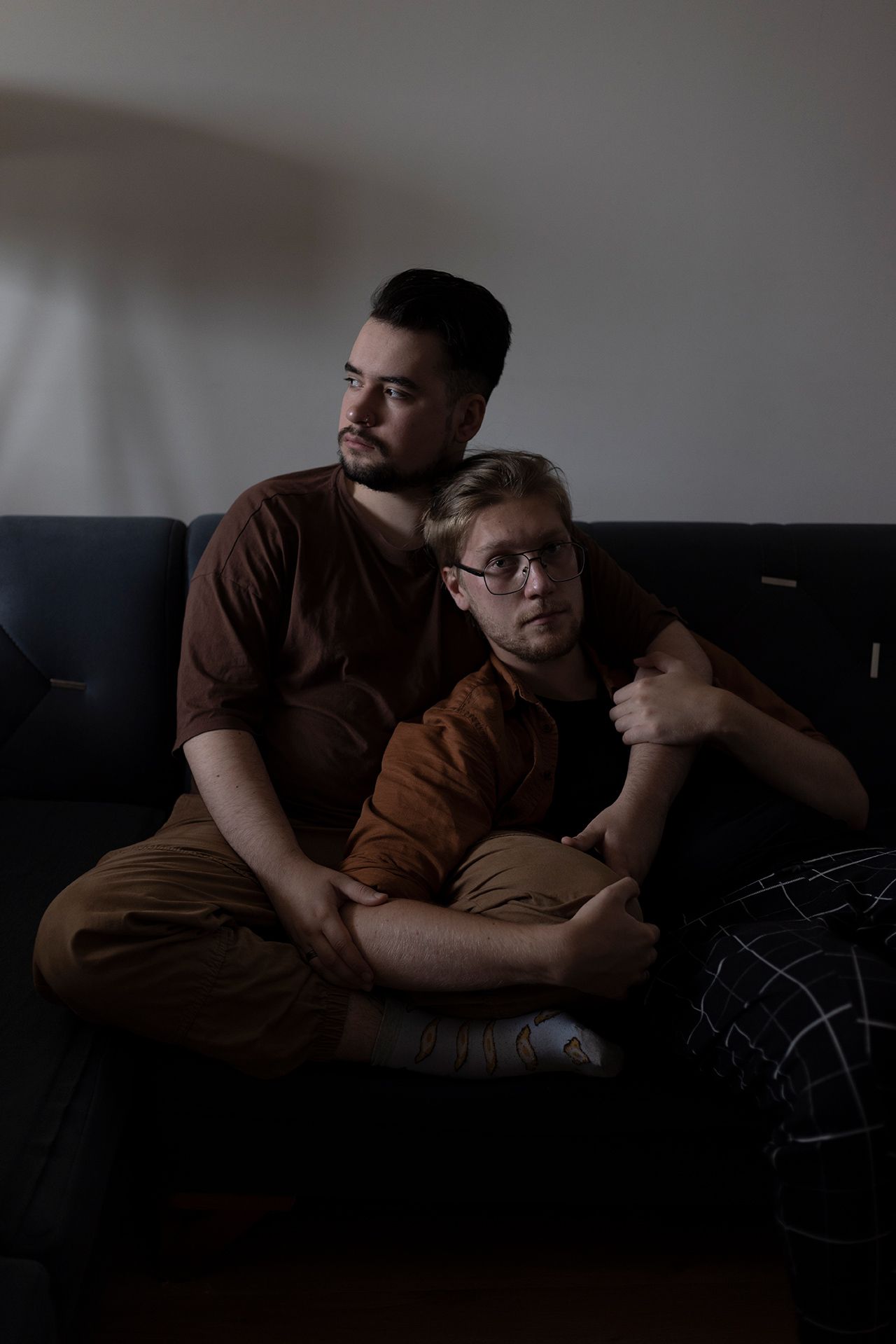 Саша — SMM-специалист и контент-мейкер родом из города Костанай в Казахстане. Стас — секс-работник и вебкам-модель — провел детство в станице Калининской Краснодарского края, затем переехал в Славянск-на-Кубани. Пара познакомилась в Санк-Петербурге, а после начала полномасштабной войны переехала в Грузию. На момент публикации этого фотопроекта Саша и Стас расстались.