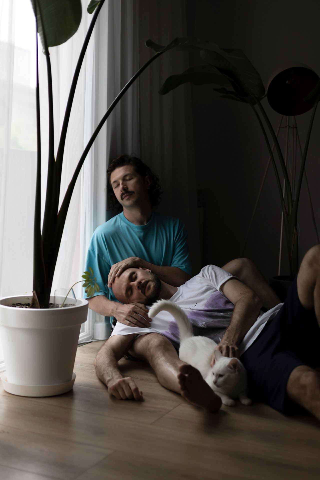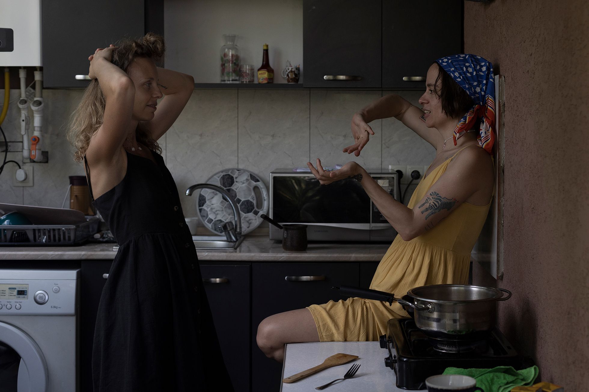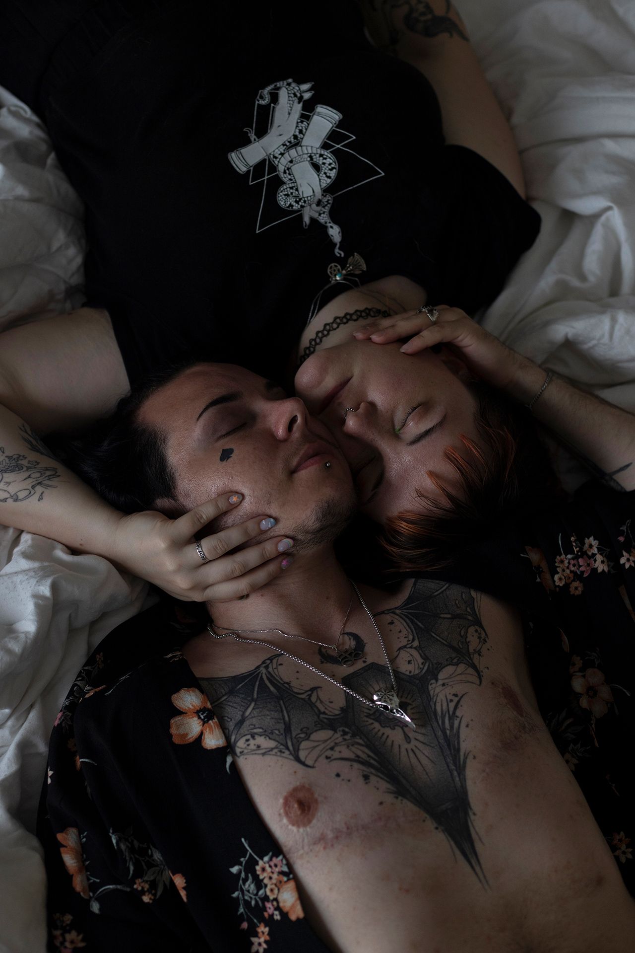 Саша — SMM-специалист и контент-мейкер родом из города Костанай в Казахстане. Стас — секс-работник и вебкам-модель — провел детство в станице Калининской Краснодарского края, затем переехал в Славянск-на-Кубани. Пара познакомилась в Санк-Петербурге, а после начала полномасштабной войны переехала в Грузию. На момент публикации этого фотопроекта Саша и Стас расстались.