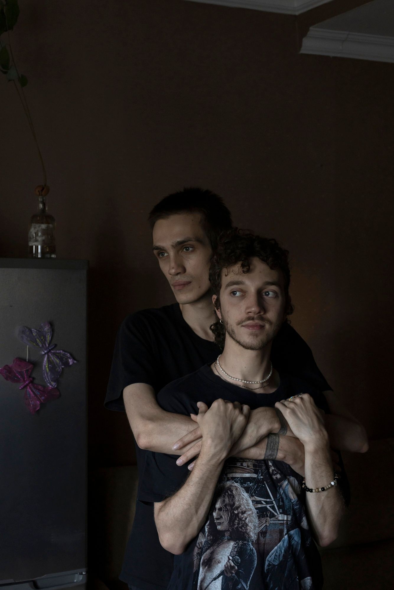 Андрей и Григорий выросли в Тольятти. Познакомились за три года до войны в дейтинг-приложении для квир-сообщества Hornet. Уехали из России после начала мобилизации в сентябре 2022 года. Три месяца провели в Казахстане, сейчас живут в Батуми. Гриша работает управляющим в квир-баре HolyWine.