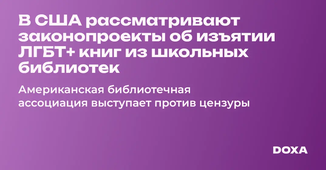Законодатель:ницы нескольких штатов планируют запретить выдачу книг про ЛГБТ+ людей детям. Американская библиотечная ассоциация выступила против цензуры в школьных и публичных библиотеках.