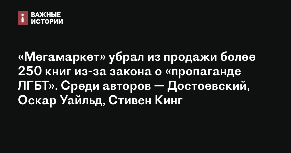«Мегамаркет» убрал из продажи более 250 книг из-за закона о «пропаганде ЛГБТ». Среди авторов — Достоевский, Оскар Уайльд, Стивен Кинг