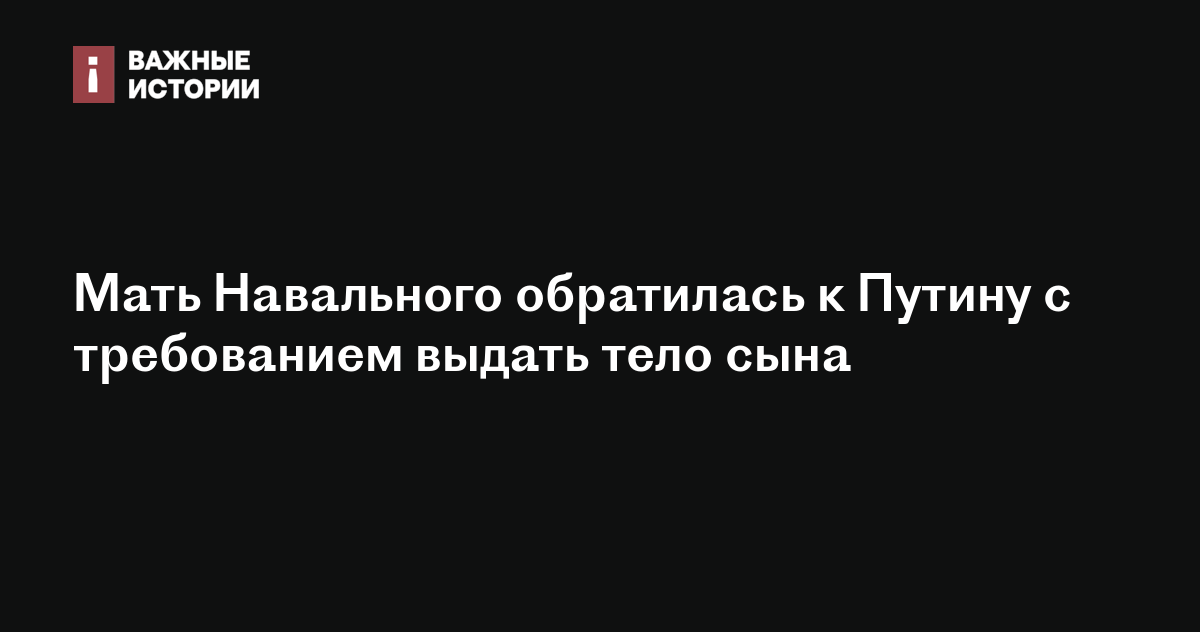 Мать Навального обратилась к Путину с требованием выдать тело сына