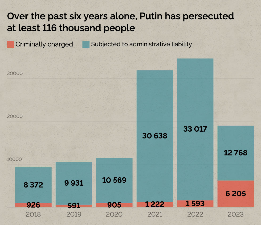 Putin has surpassed Khrushchev and Brezhnev in terms of the scale of repressions – over the past six years alone, he has persecuted at least 116 thousand people