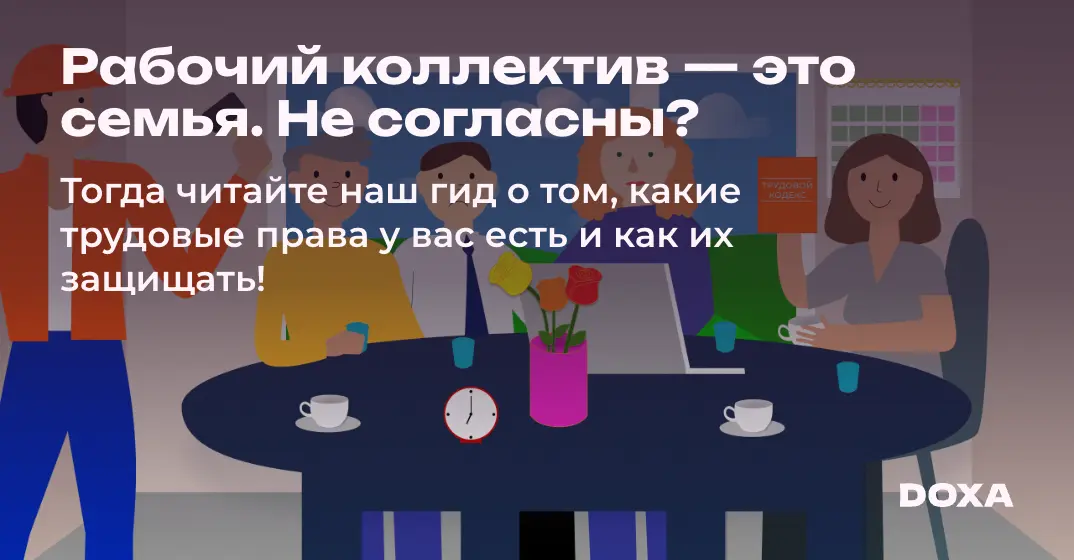 О том, что коллектив — это семья, часто говорят работодатель:ницы. И часто прикрывают этими словами банальные нарушения трудовых прав. Например, задержки зарплаты, оскорбления сотрудни:ц или постоянные переработки. По данным опросов, в 2022 году больше половины россиян:ок работали сверхурочно. Как защитить свои трудовые права? Какие законы нужно знать для этого? Какие организации могут помочь?