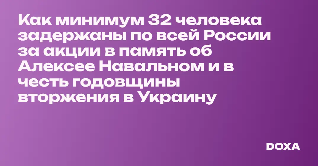 Как минимум 32 человека задержаны по всей России за акции в память об Алексее Навальном и в честь годовщины вторжения в Украину