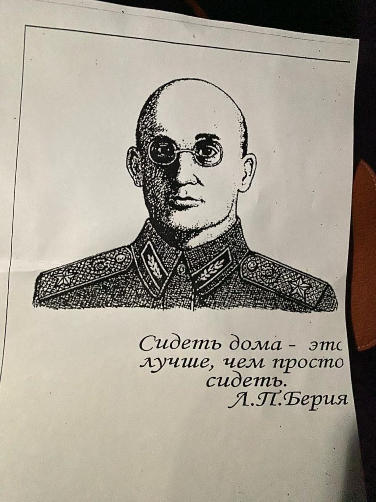 На распечатанном портрете была подпись: «Сидеть дома — это лучше, чем просто сидеть».