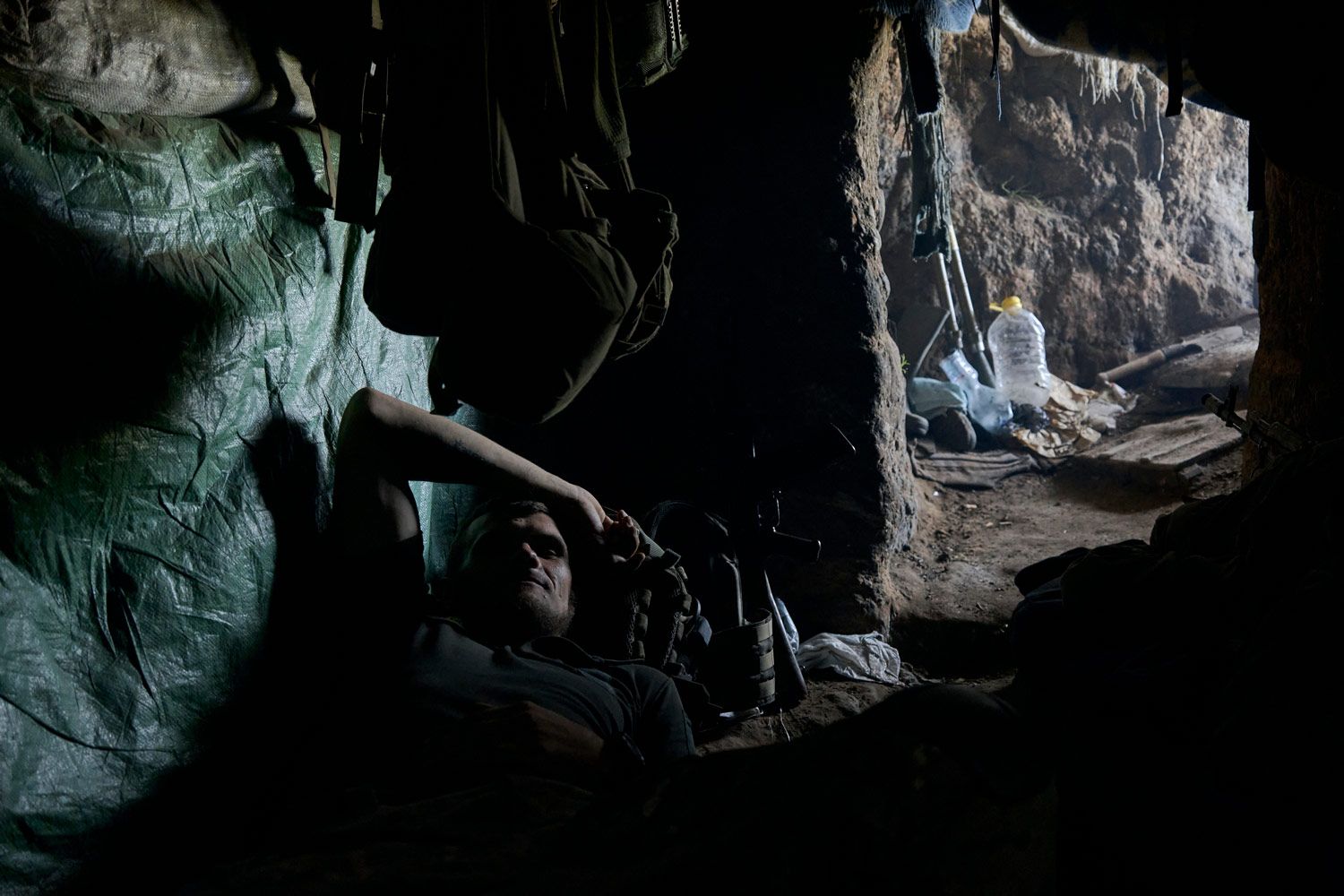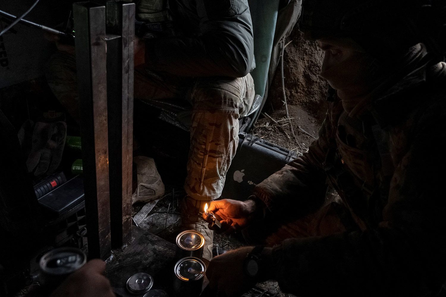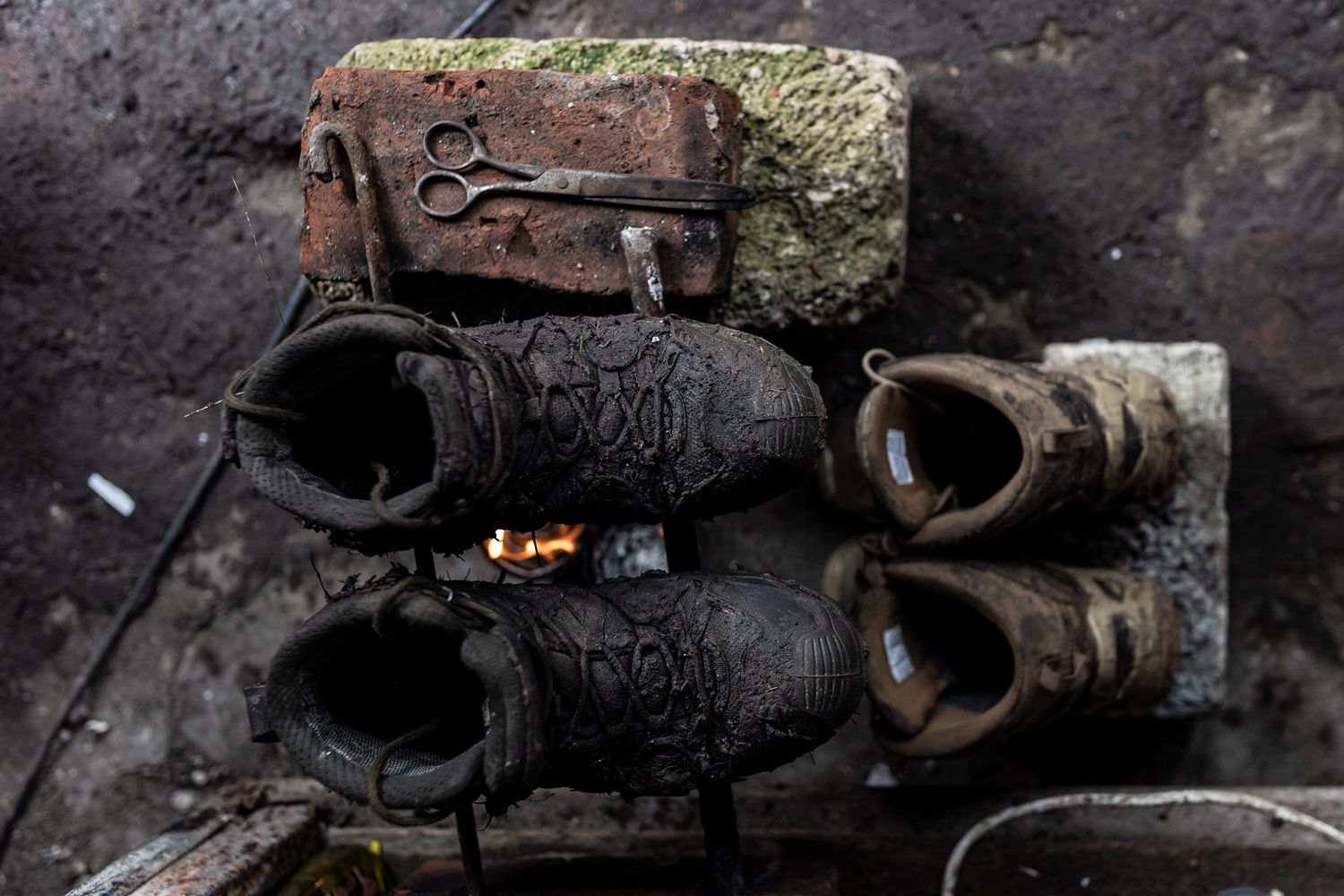 В траншеях и окопах, часто построенных наспех, создать нормальные условия жизни невозможно. Порой солдаты спят вповалку со снаряжением и друг другом на деревянных поддонах. Скапливающийся мусор девать некуда, и он, как правило, валяется прямо здесь же. Согреться часто негде, а костры разводить нельзя: они демаскируют позицию. Все это сопровождается постоянными обстрелами и жужжанием дронов (причем не всегда понятно, своих или чужих), которые день и ночь кружат над головой.