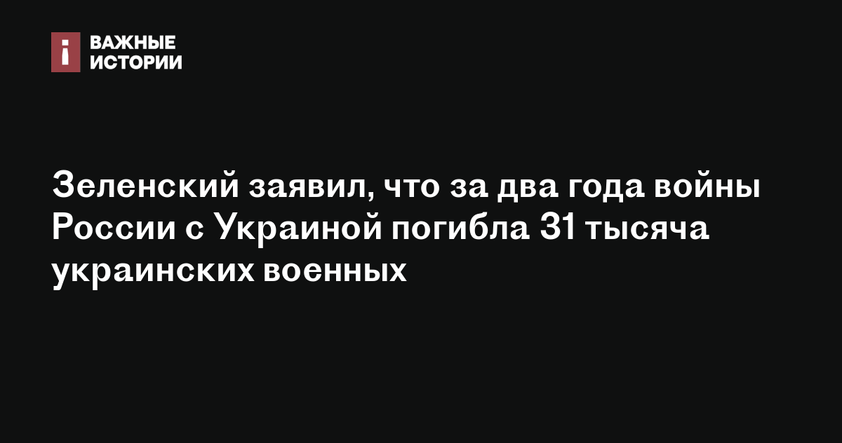 Зеленский заявил, что за два года войны России с Украиной погибла 31 тысяча украинских военных