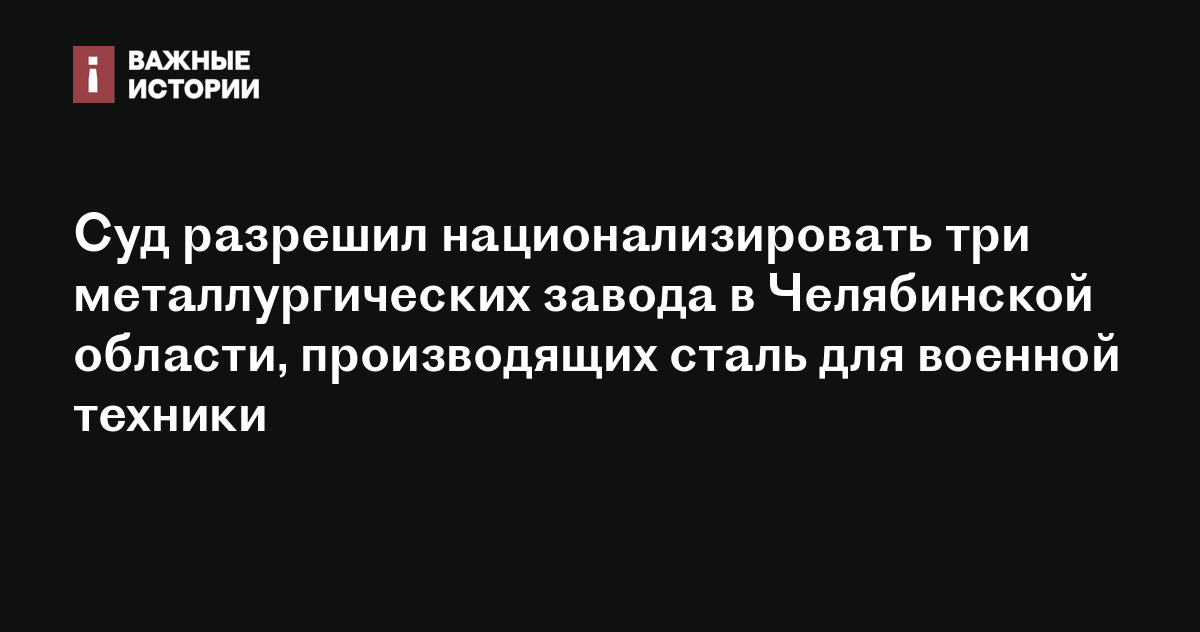 Суд разрешил национализировать три металлургических завода в Челябинской области, производящих сталь для военной техники