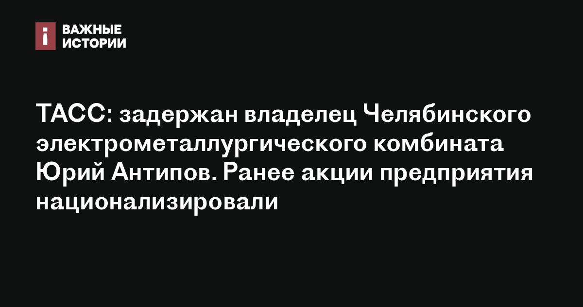 ТАСС: задержан владелец Челябинского электрометаллургического комбината Юрий Антипов. Ранее акции предприятия национализировали