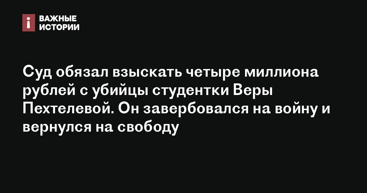 Суд обязал взыскать четыре миллиона рублей с убийцы студентки Веры Пехтелевой. Он завербовался на войну и вернулся на свободу