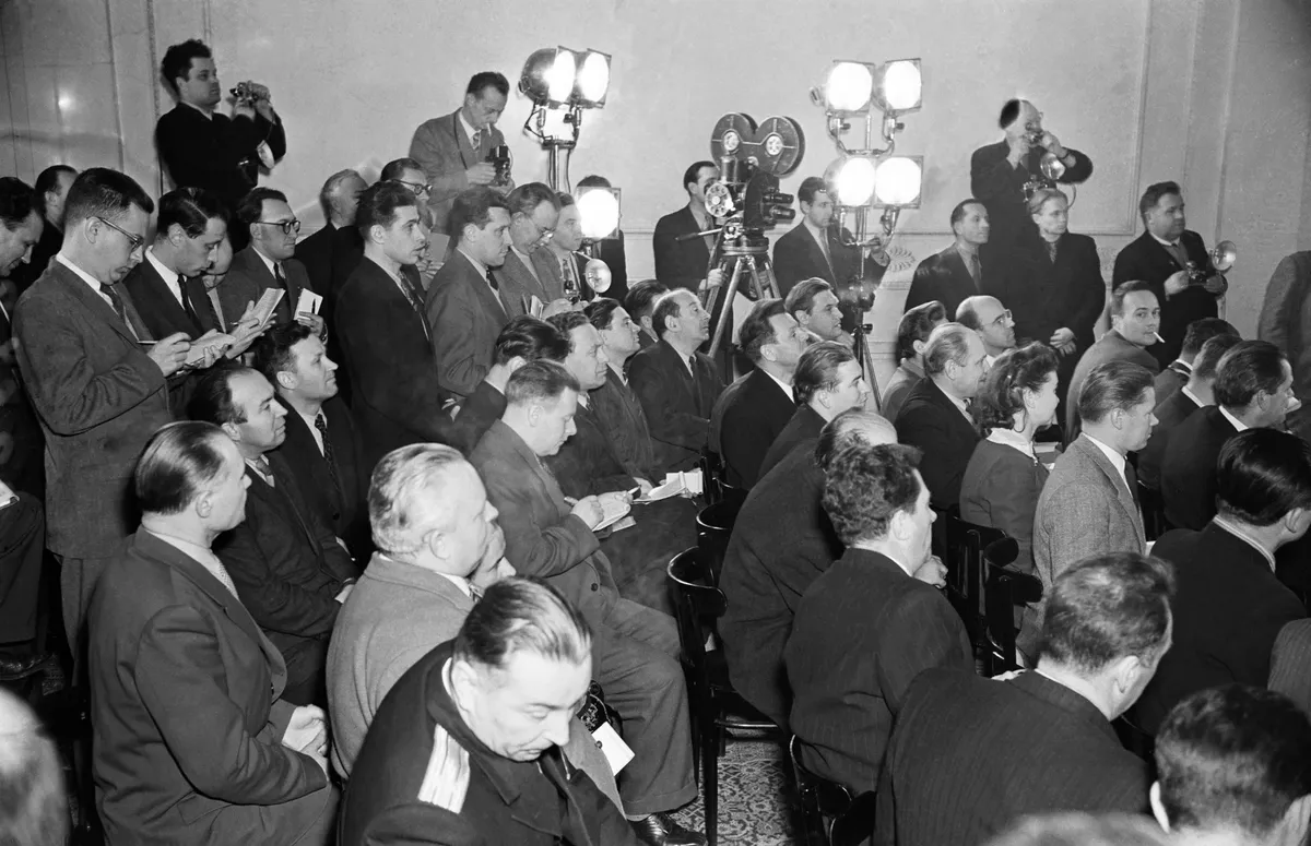 Никита Сергеевич Хрущев во время выступления на церемонии открытия XXI съезда КПСС в зале заседаний Большого Кремлевского дворца. Фото: ТАСС