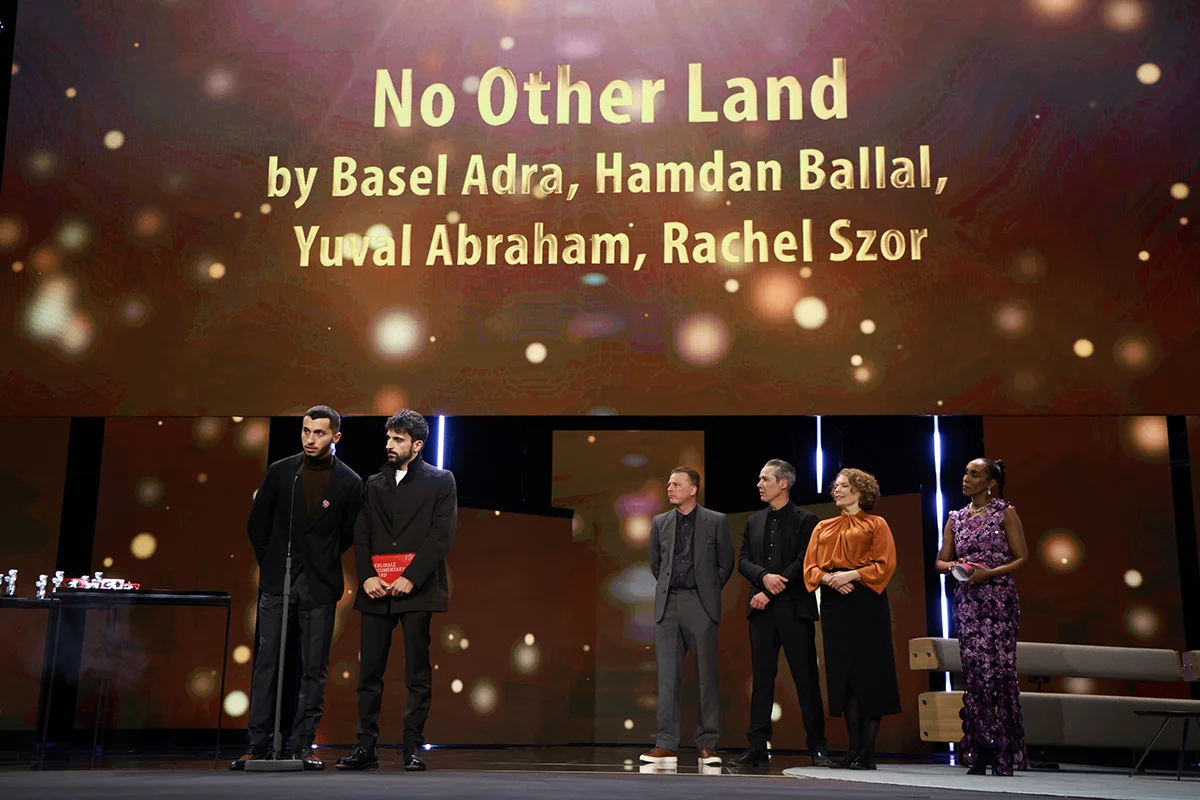 В категории «Лучший документальный фильм» победителем стала израильско-палестинская картина No Other Land («Нет другой земли») палестинца Базеля Адра и израильтянина Юваля Абрахама. Он же был назван лучшей документалкой по итогам зрительского голосования. Израильско-палестинский конфликт, война Израиля и ХАМАС стала сквозной темой церемонии награждения — со сцены неоднократно звучали призывы прекратить огонь, а некоторые члены жюри выходили на сцену с словами “Cease fire now” (англ. «прекратите огонь немедленно». — Прим. авт.), написанных на кусочках ткани, прикрепленных к вечерним нарядам. Режиссер Адра призвал со сцены немецкое правительство прекратить посылать оружие в Израиль.