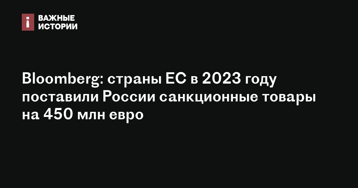 Страны Евросоюза в 2023 году поставили России санкционные товары на 450 млн евро. Об этом сообщает Bloomberg со ссылкой на чиновников, знакомых с ситуацией.