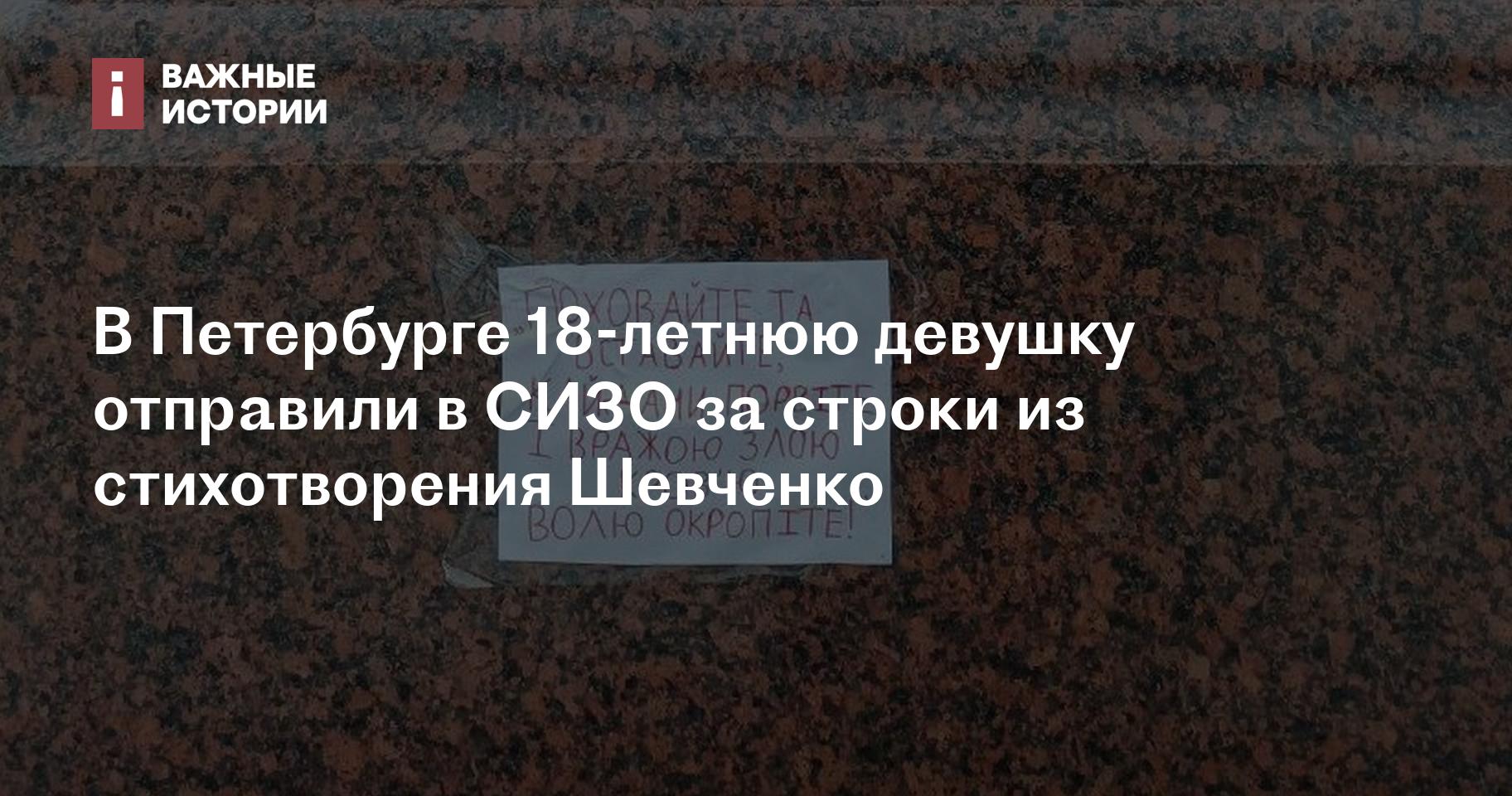 В Петербурге 18-летнюю девушку отправили в СИЗО за строки из стихотворения Шевченко