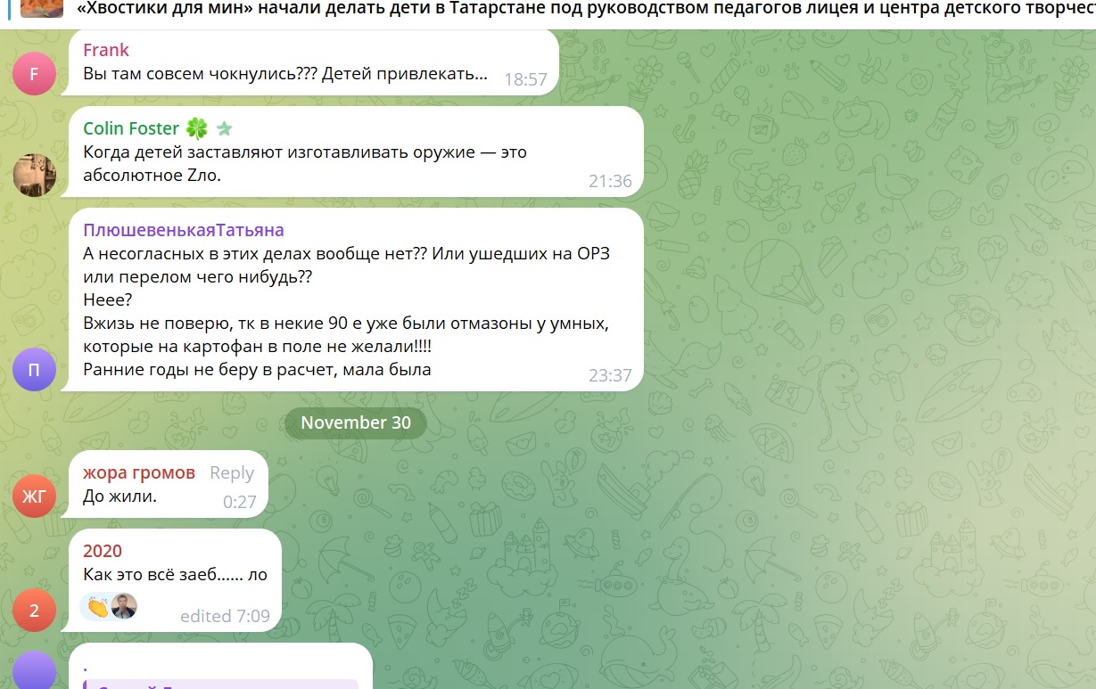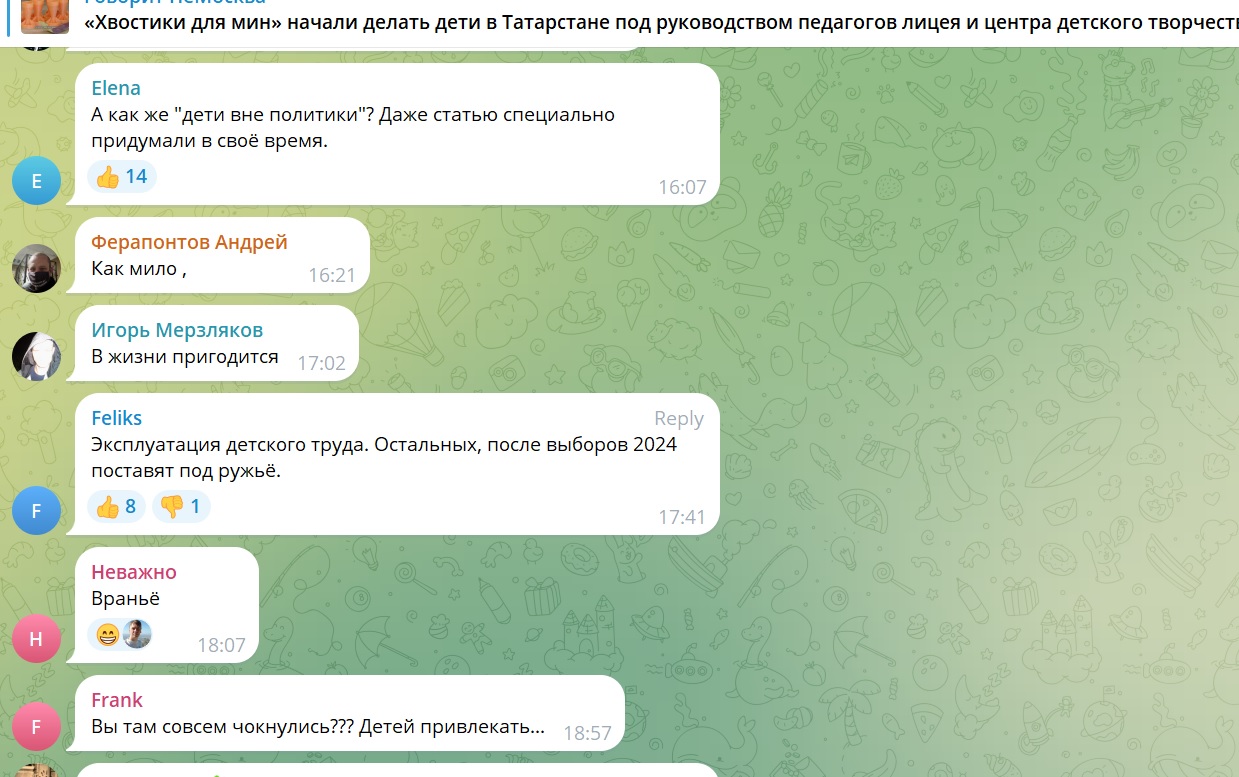 Примечательно, что чиновники и депутаты изначально пробовали обойти закон, требующий получать письменное разрешение родителей на использование детского труда. Например, в прошлом году ростовский депутат Татьяна Иващенко предложила использовать "для нужд СВО" труд детей без согласия их родителей, а именно привлекать несовершеннолетних к производству окопных свечей и маскировочных сетей. Иващенко назвала это "общественно значимым добровольческим трудом".