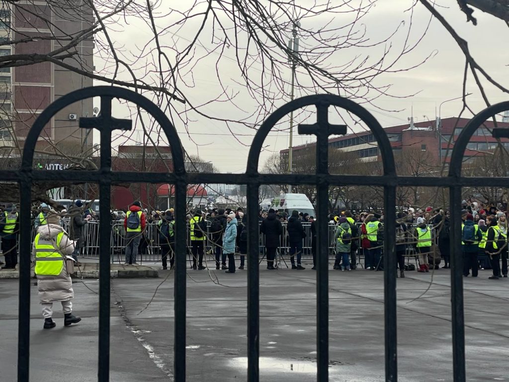 Очередь к храму, где будут отпевать Навального, продолжает расти.