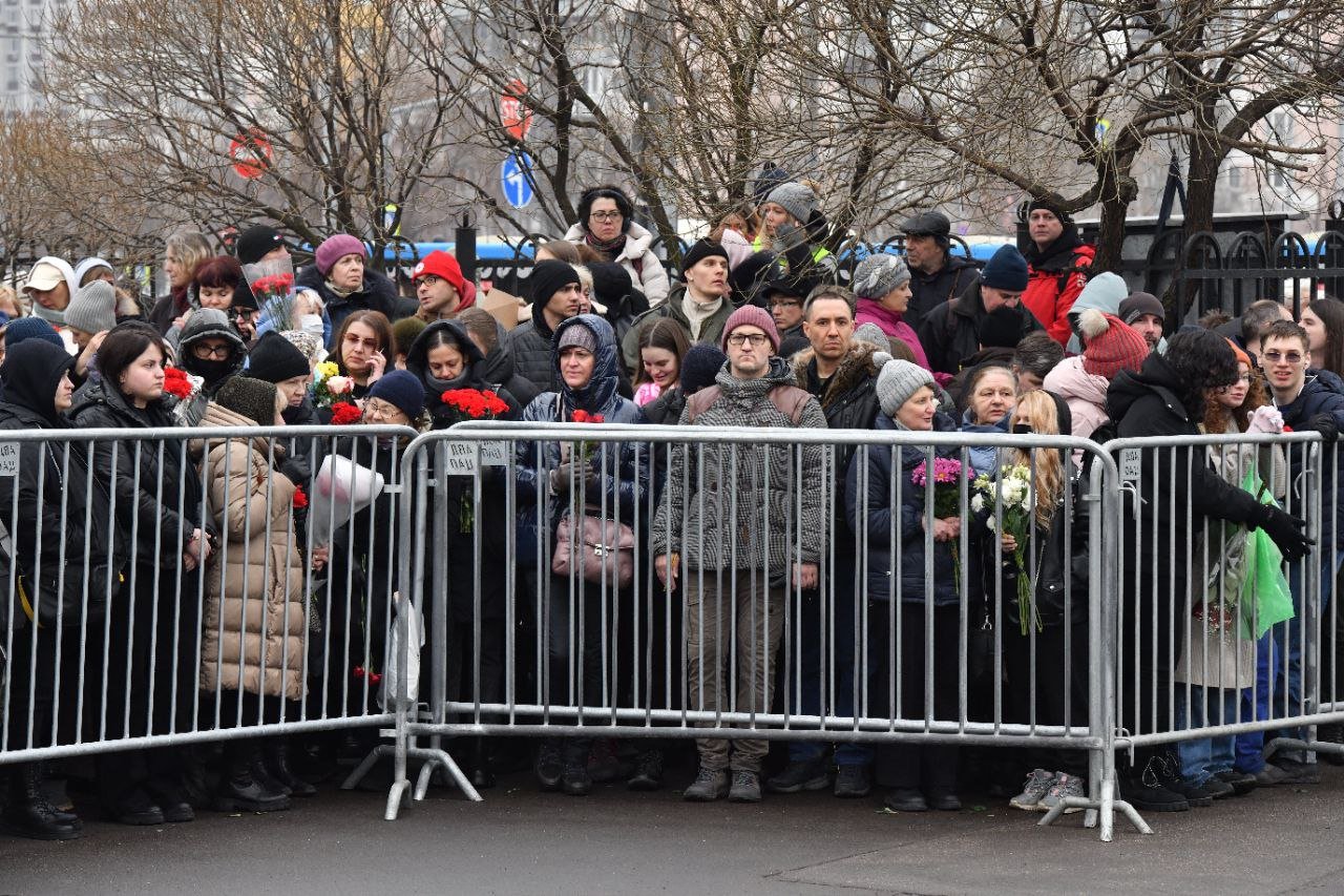 1 марта в Москве прошли похороны Алексея Навального, попрощаться с политиком пришли тысячи человек. Накануне московская полиция выстроила в районе Марьино коридоры из металлических ограждений и стянула туда сотни силовиков. Обряд отпевания прошел в храме иконы «Утоли моя печали» и продлился меньше 20 минут — предположительно из-за давления на его настоятеля со стороны РПЦ. Подойти к гробу позволили только родственникам. Лишь после того, как тело опустили в землю, полицейские разрешили людям попрощаться с оппозиционером. Очереди к церкви и Борисовскому кладбищу растянулись на несколько сотен метров, а участники прощания шествием прошли по Марьино. «Медиазона» кратко рассказывает, как Москва прощалась с Алексеем Навальным.