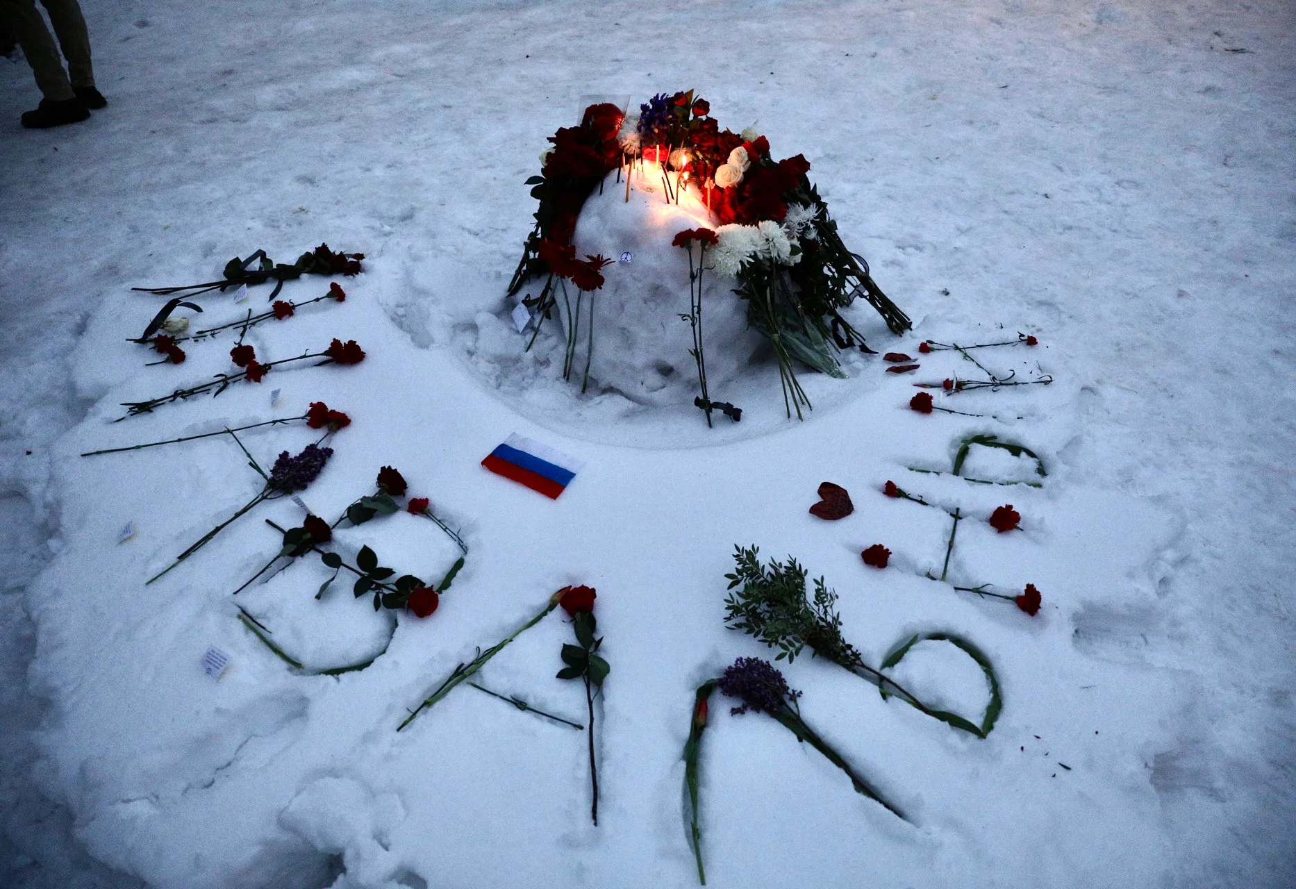 По пути от церкви «Утоли моя печали» к Борисовскому кладбищу и около станций метро «Марьино» и «Борисово» начали появляться стихийные мемориалы памяти Алексея Навального. К могиле продолжают идти люди.