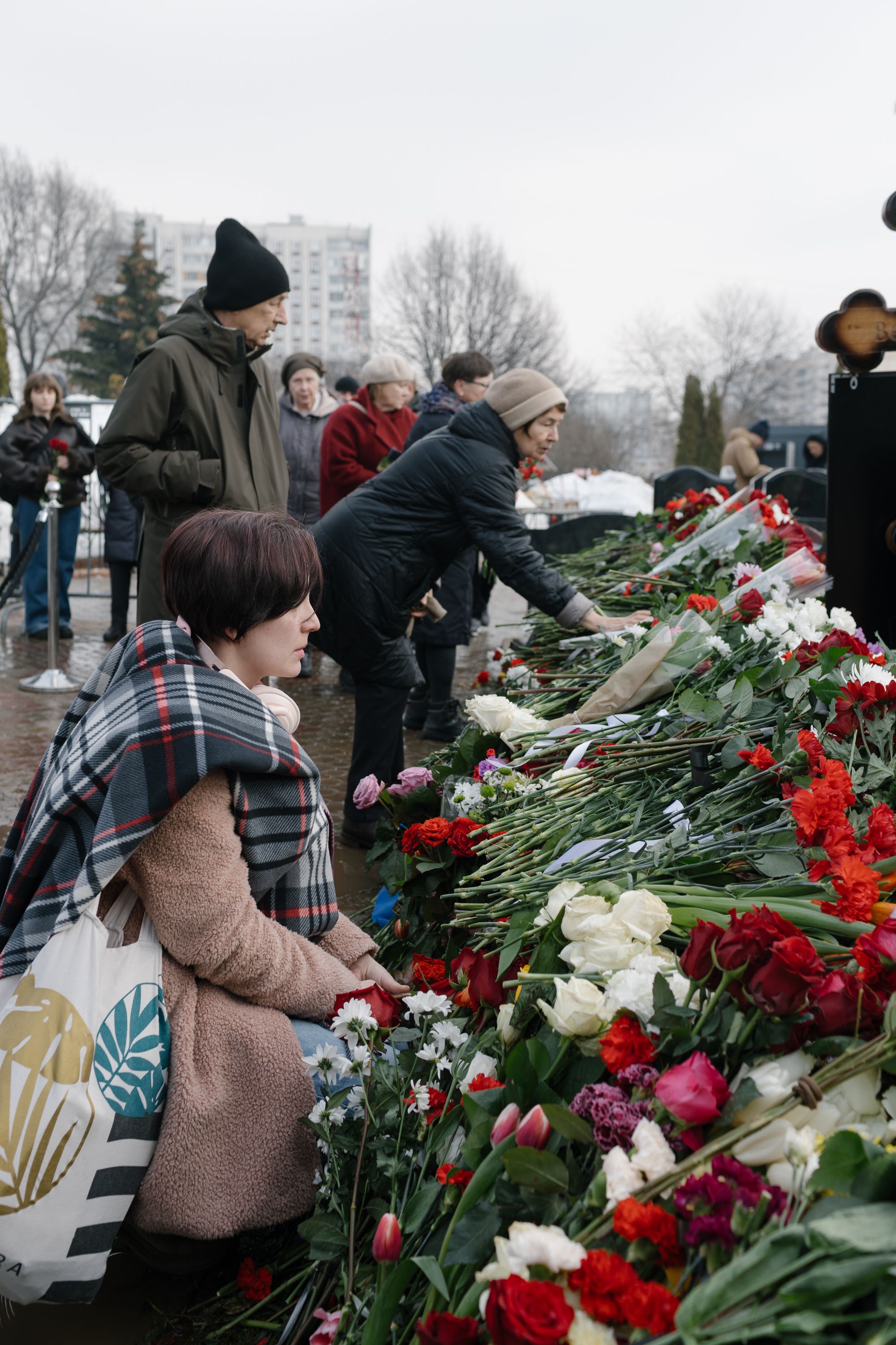 «Не торопили и разрешали стоять сколько угодно». Люди продолжают нести цветы к могиле Навального на Борисовском кладбище