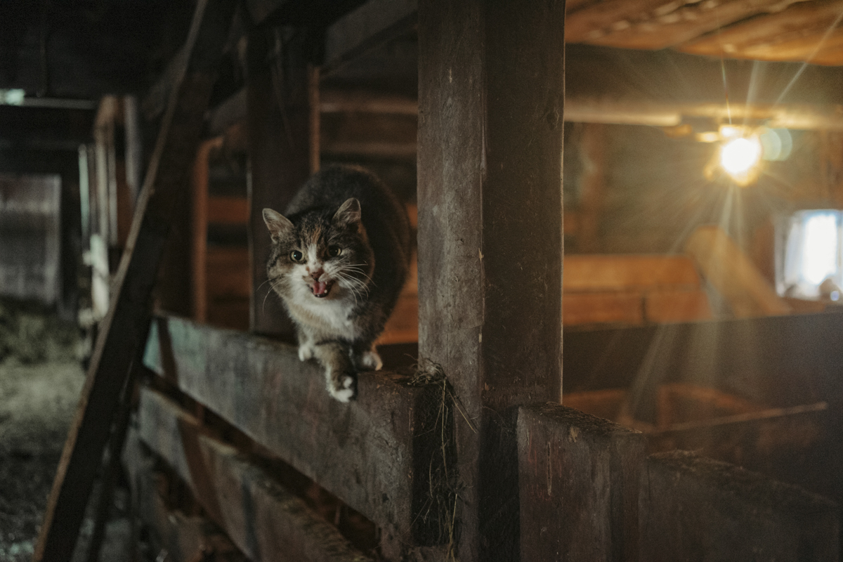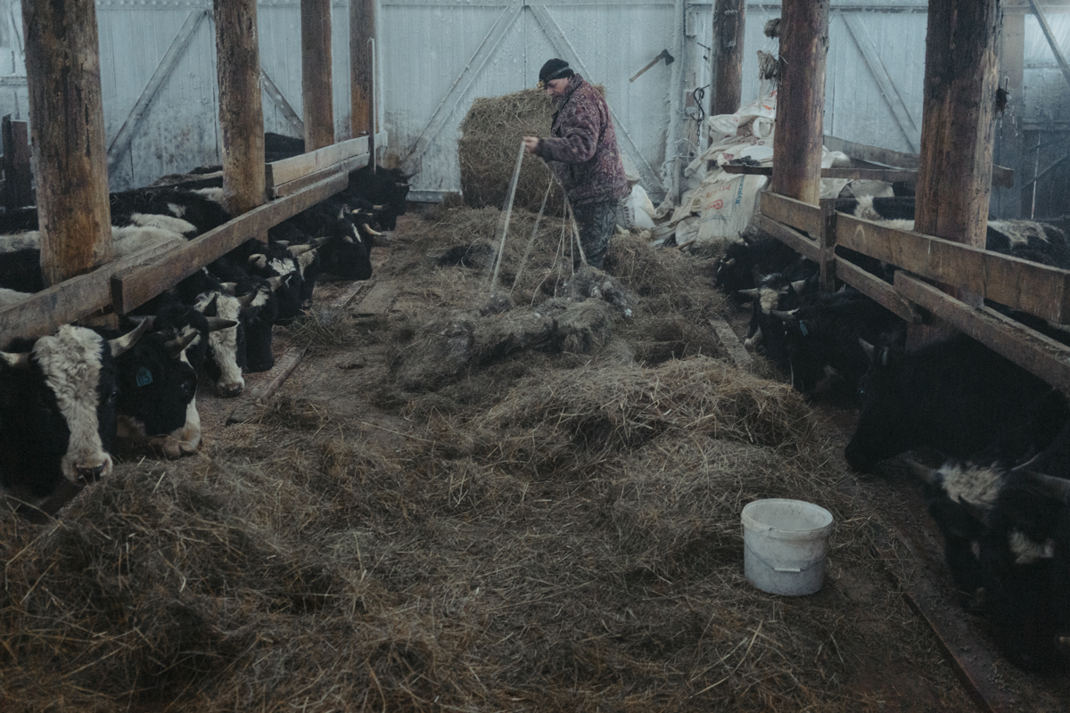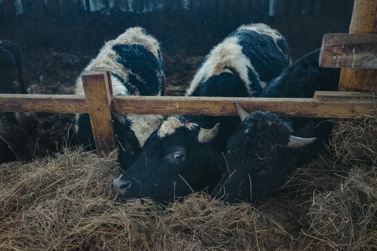 Телятник со временем подладили и уменьшили. Теперь у Чановых 28 телят, дойная корова Верба, пять свиней, куры, две собаки и три домашние кошки. Еще три муры — временные жители. Приходят на зимовку из соседних деревень. Венера всех кормит, но не за просто так: каждая кошка имеет свой подконтрольный участок. Рыжая стережет хозяйственную часть дома, полосатая контролирует ситуацию в курятнике, а самая умная, Мура, заняла пост начальницы хлева.