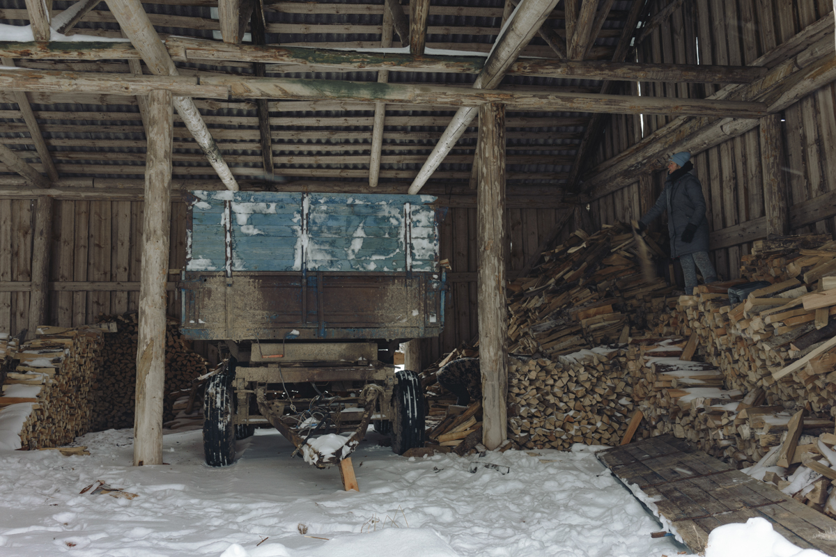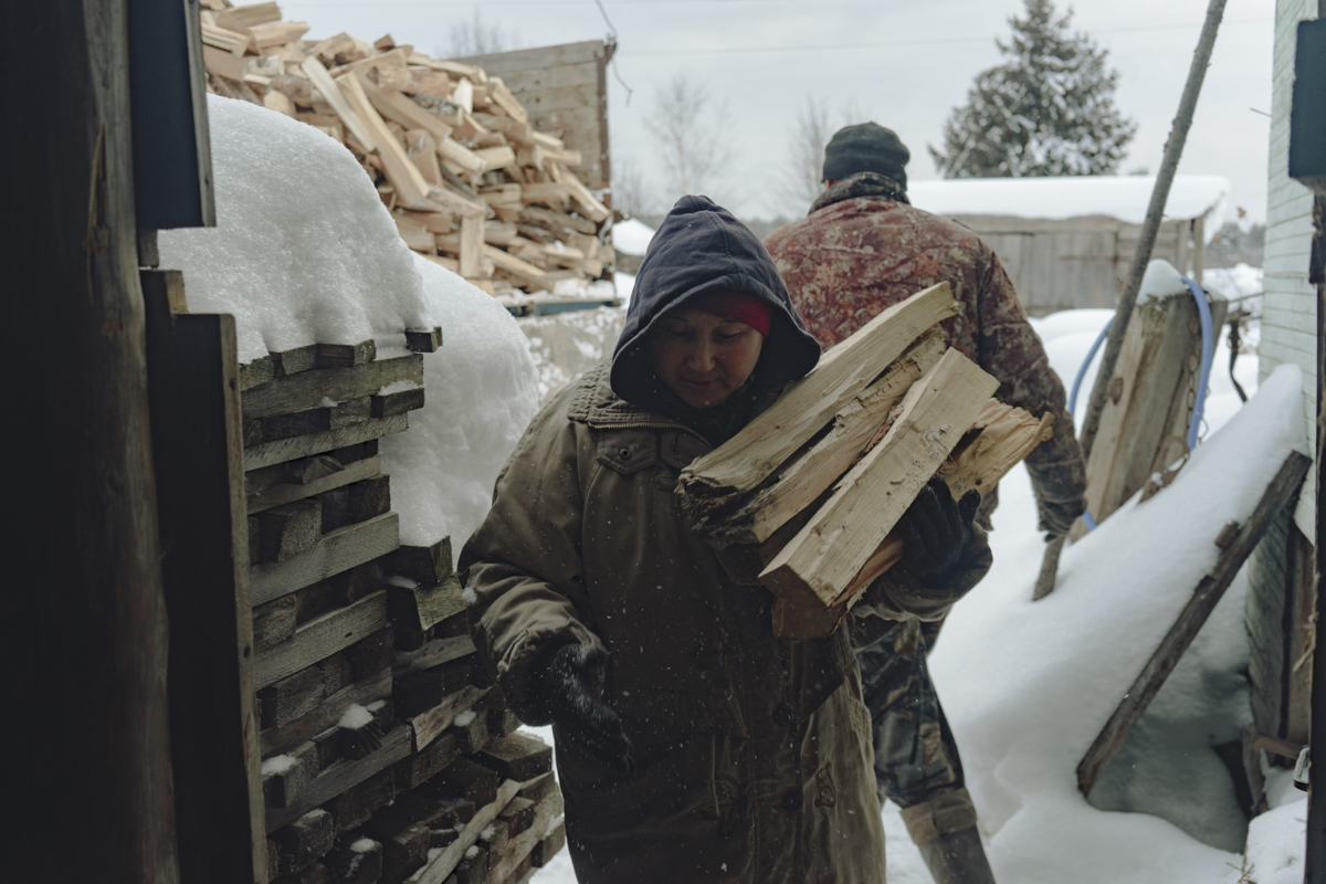 Василий и Венера разбирают дрова из кузова и складывают в дровенникФото: Анастасия Шумихина для ТД Эта работа заняла весь день: в первой половине мы дрова загружали, во второй — выгружали и складывали. Работали все, включая Василия и нашего фотографа Настю. Венера же призналась, что обычно она делает это сама: растягивает работу на два дня. Вася на подхвате. А через месяц дрова заканчиваются, и все повторяется вновь.