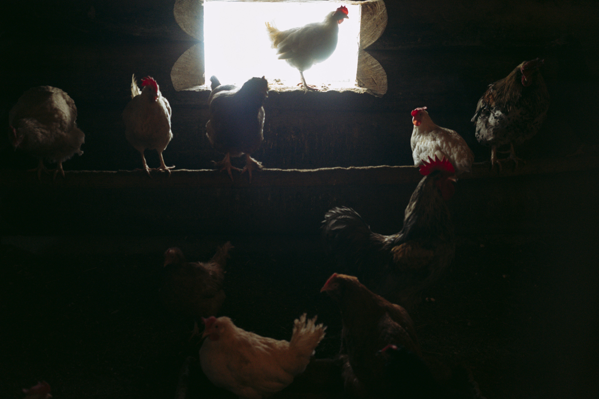 Куры с петухом в курятникеФото: Анастасия Шумихина для ТД И все это время где-то рядом ходил Василий: вначале робко, а когда брак Венеры распался, начал ухаживать. В сентябре 1999 года они поженились — поехали в загс на украшенном шариками тракторе и с поросятами в кузове, которых везли в соседний поселок на продажу. Расписались, пригубили шампанского — и снова за дела.