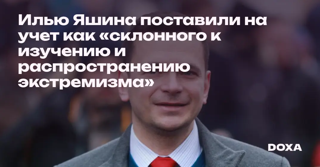 Илью Яшина поставили на учет как «склонного к изучению и распространению экстремизма»
