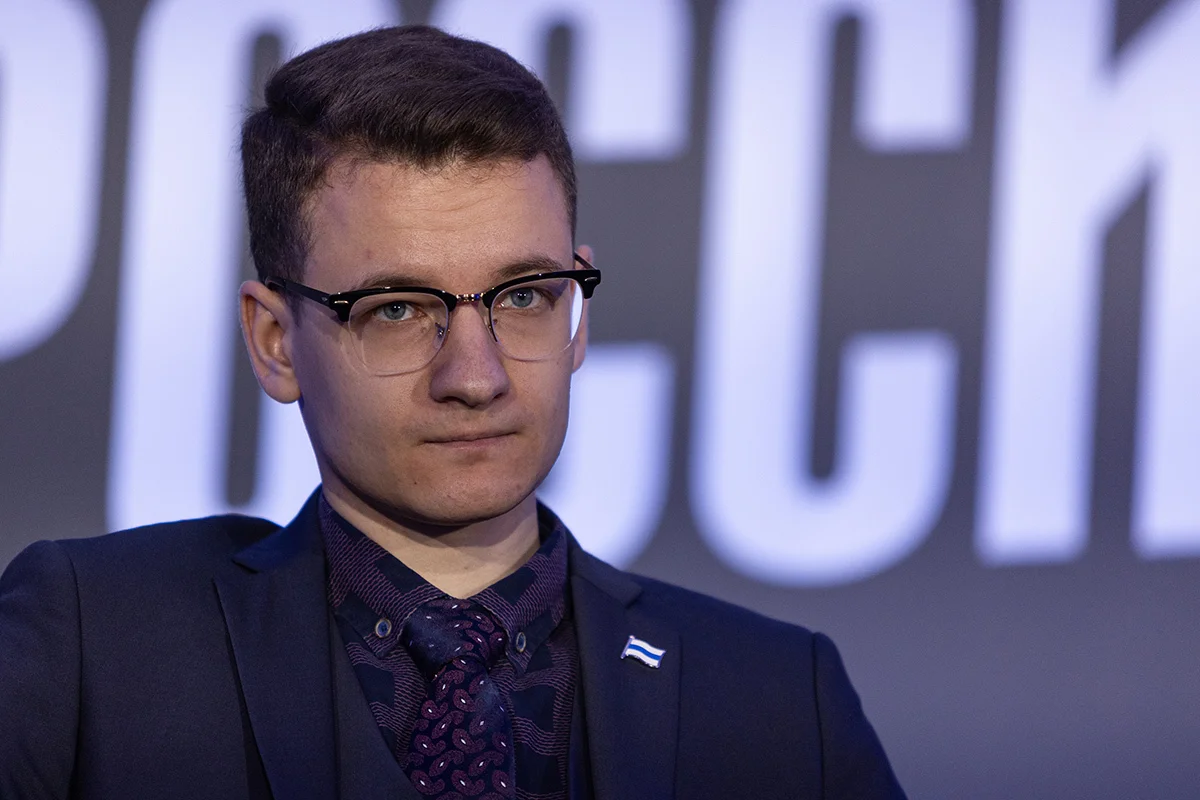Когда приветственное выступление Матвийчук закончилось, слово взял один из организаторов ФСР, бывший политзаключенный и бывший русский националист Даниил Константинов.