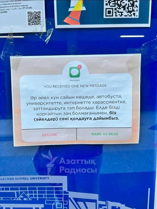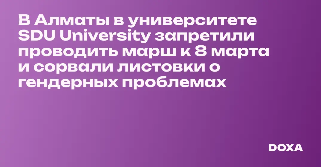 В частном университете SDU University в Алматы студент:кам не разрешили провести марш к Международному женскому дню и сорвали листовки о гендерных проблемах, расклеенные в вузе, сообщает «Азаттык».